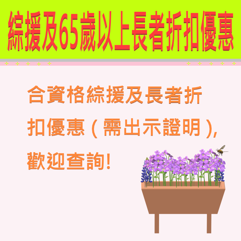 綜援及65歲以上長者折扣優惠, 需出示證明, 歡迎電話查詢, 電話: 31885640, 或 whatsapp: 46888560